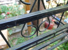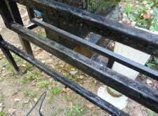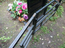 Последовательность работы стандартная. Во-первых, сжечь старую краску, во-вторых, зачистить ограду до металла, после покрыть грунтом чистый металл и покрасить черной краской. После покраски убраться на могиле. Далее на фото обожженная краска на ограде.